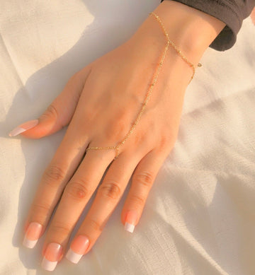 Dainty Gold-Plated Beaded Hand Chain Bracelet