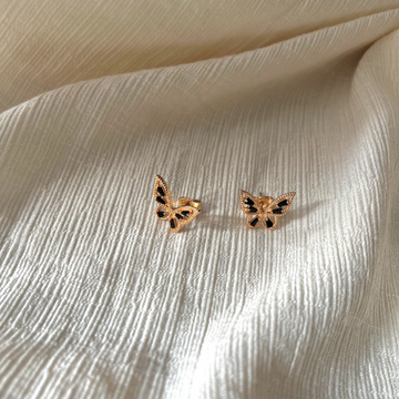 Tiny Black Stone Gold butterfly Earrings