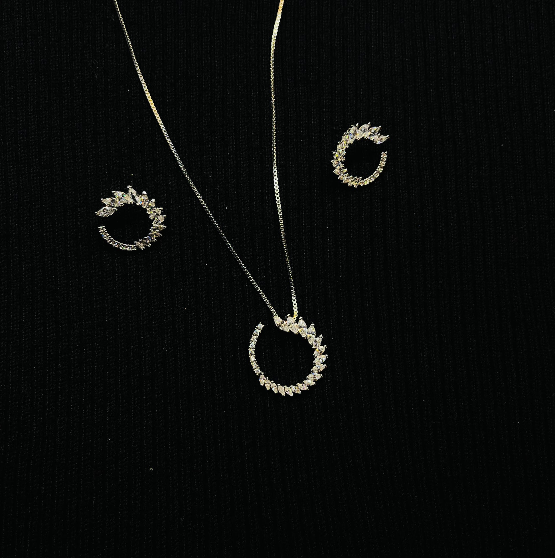 Cubic Zirconia Half Round Leaf Pendant Necklace